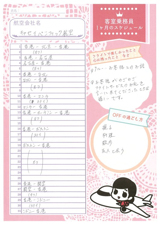1日のスケジュールと1ヶ月のフライトスケジュールをお聞きしました!!