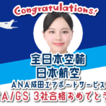 HOME > 2025年 > 10月 > 14日 日別アーカイブ:2025年10月14日 新卒CA2社&GS1社、計3社合格!! 2025/10/14 GS, ANAグループGS, 日本航空(JAL), 全日本空輸(ANA), CA